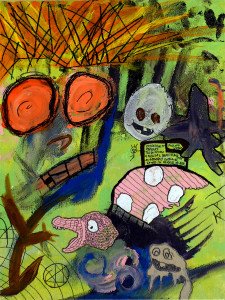 I was feeling very disconnected when I made this piece. It was late in the afternoon, on the day I had had my second session with my new counselor in Jacksonville. There was a lot going on in my head, but I couldn’t really get in tune with any of it. It probably didn’t help that I was half watching TV as I worked on it. That’s extremely difficult for me to admit. This (what you’re reading) is the third statement I’ve written about this piece, but the first that I’ve mentioned that last fact. Though the piece does have the word “TELEVISION” in it, so…