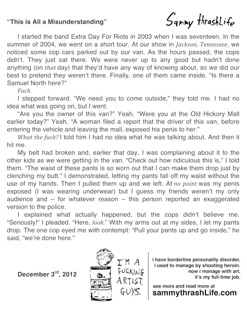 “This is All a Misunderstanding” is a 10×8-inch drawing, created by artist Sammy thrashLife in November 2012 in Redington Beach, FL. The full story behind it is featured right here on sammythrashLife.com.